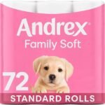 Andrex Family Soft Toilet Tissue 72 Toilet Rolls (Previously Andrex Gentle Clean Toilet Paper), Gentle on your Family’s skin– Bulk Pack of 72 Toilet Rolls, Packaging May Vary