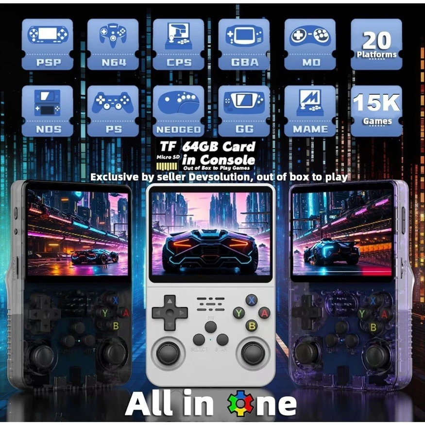 ⏰Today Olny RM 5.98⏰R36S Retro Handheld Video Game Console Linux System 3.5 Inch IPS Screen Portable Pocket Video 64GB Games