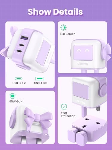 UGREEN Uno 65W USB C Charger. Nexode 3-Port GaN Fast Compact Wall Charger Block Type C Power Adapter for iPhone 16 Pro Max/15. MacBook. Galaxy S24 Ultra PPS45W. Pixel 9/8. Steam Deck. ROG Ally. Purple